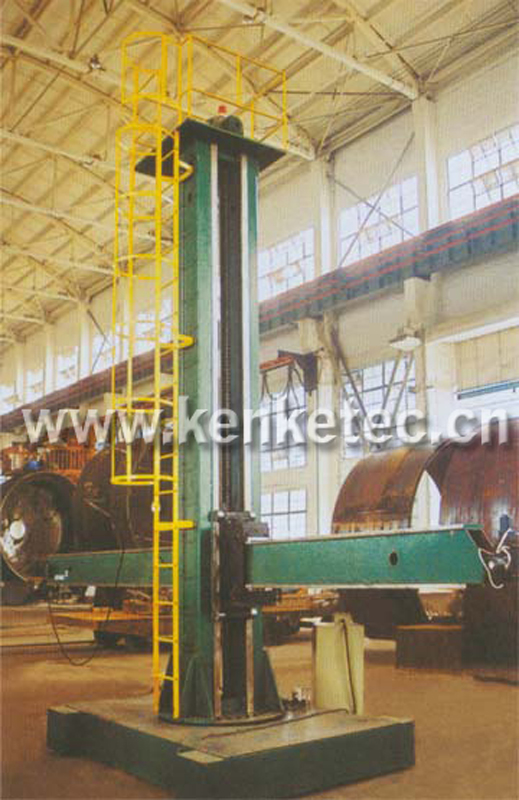 6.立柱的回轉支構安裝于臺車內(nèi),導向機構結構更為緊湊,橫臂與導軌面的距離最低可達1050mm(單立柱結構大約為1600mm),在焊接筒體內(nèi)縫時,無需墊高滾輪架,使用更為方便。